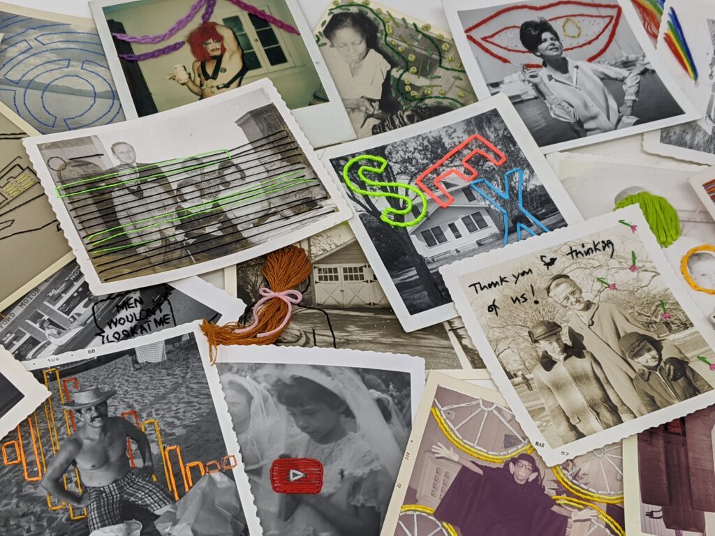 I added thread to bring new life and narrative to forgotten faces and places. With each tiny stitch, I’m drawing attention to the overlooked, reframing nostalgia with wit, curiosity, and care. The physical slowness of embroidery, the deliberate layering, mirrors the emotional work it takes to revisit memory or reclaim meaning through rigorous critique. Each piece becomes a kind of stitched poem—textured, tender, time-bending.