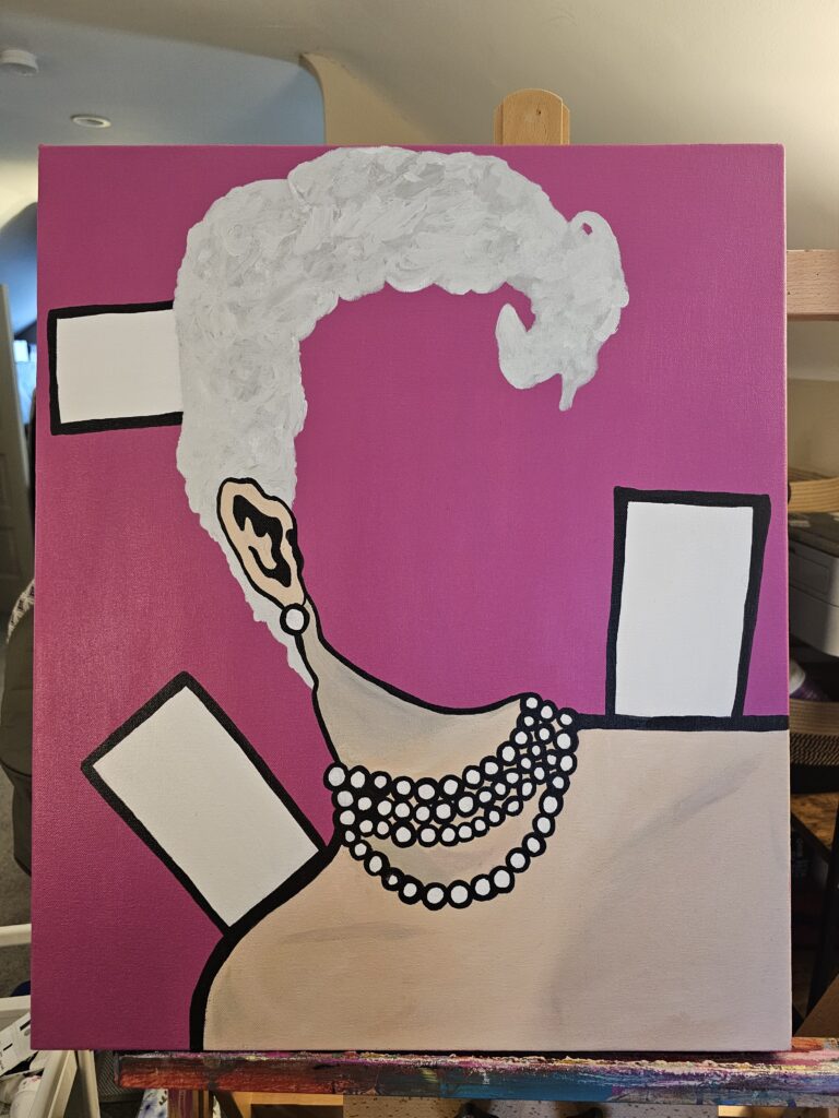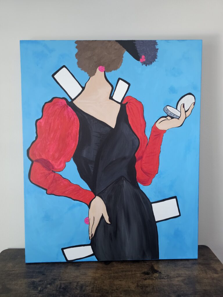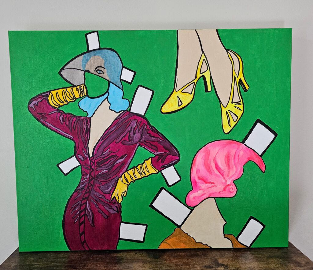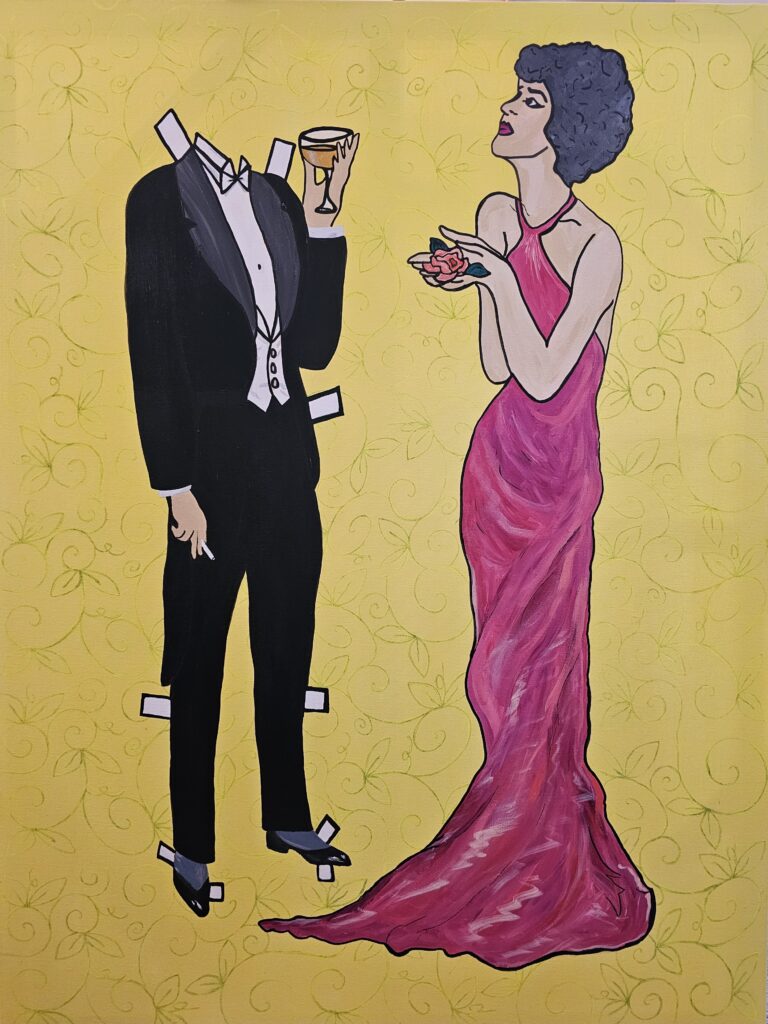 Promising Mad Women by Jackie Mantey is a collection of acrylic canvas paintings that reimagine female “madness” as a sacred inheritance of instinct, pain, and potential. Each painting reclaims a name that history once tamed—saints, ghosts, lovers, myths—forming a chorus of potential unbecoming, their beauty edged with warning. Painted as jawless, faceless, or disembodied paper dolls—a form that encourages both self-expression and social constraint—the series explores the contradictions of becoming one’s feminine self within a world constantly trying to define it. These figures refuse containment even as they exist within it.